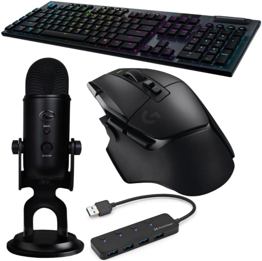 Immerse yourself in top-notch gaming with the impossibly thin G915 keyboard and sleek G502 X LIGHTSPEED Wireless Gaming Mouse. You also get USB Microphone (Blackout), and 4-Port USB 3.0 Hub.