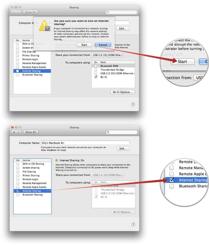 CREATE INTERNET SHARING ON MAC